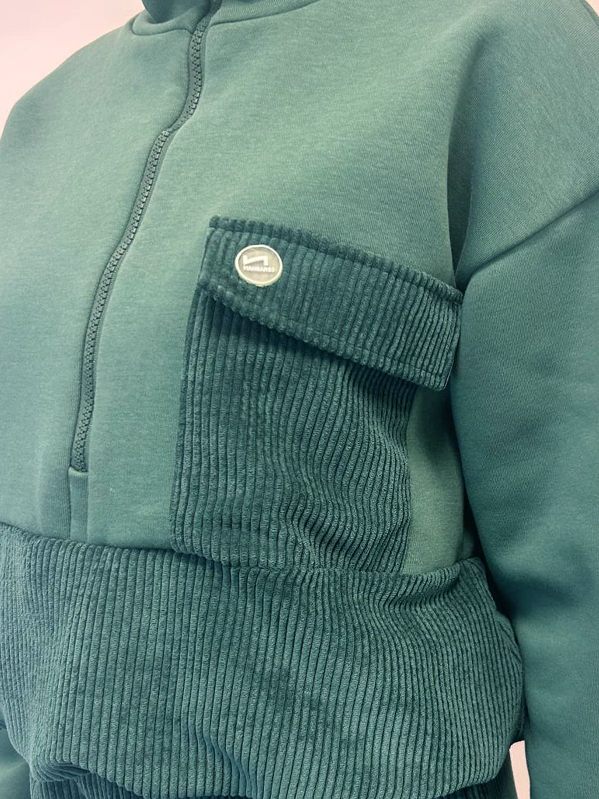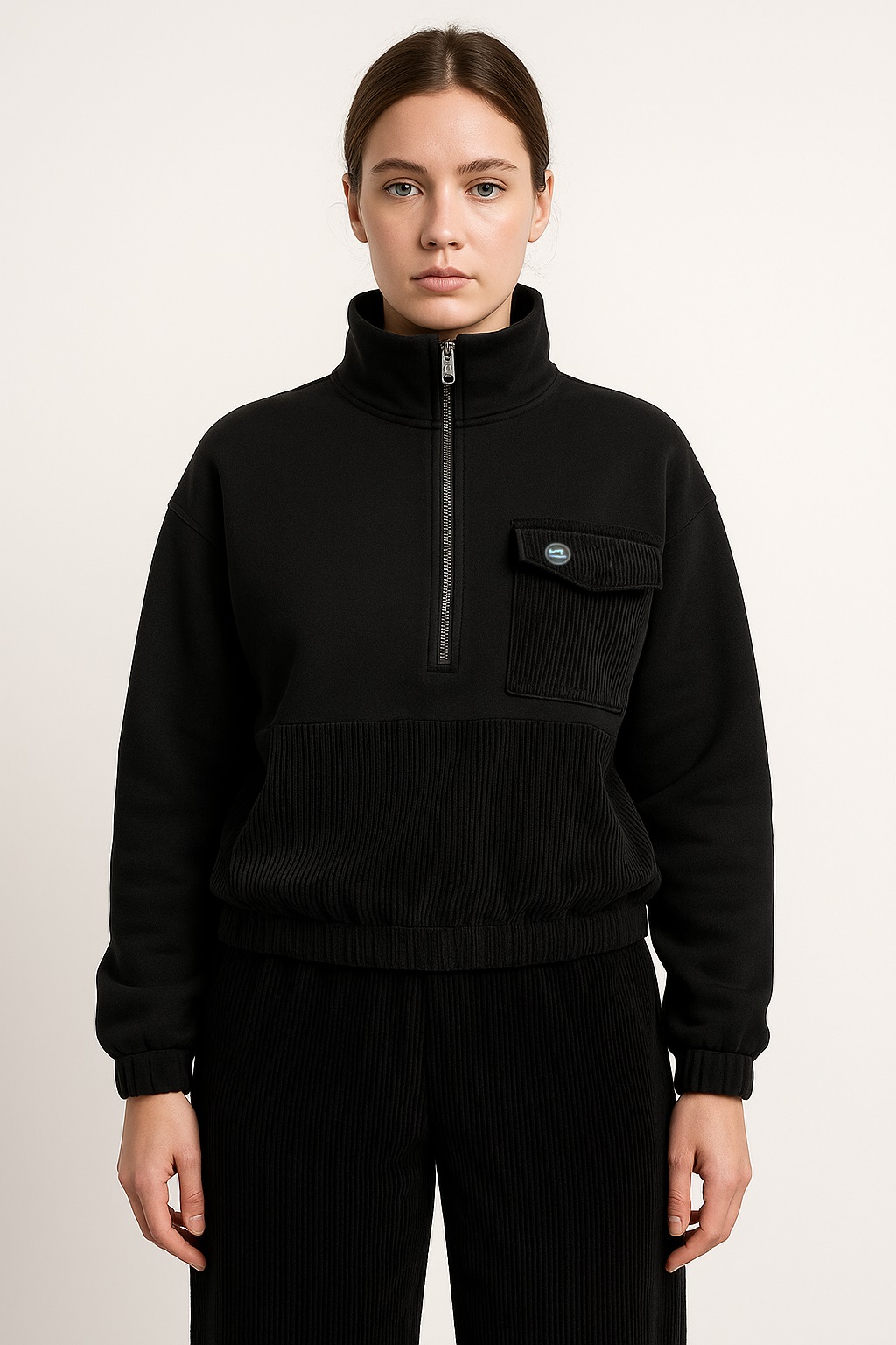 Felpa chiusa con collo e mezza zip in felpa brushed- inserti in velluto - Made in Italy