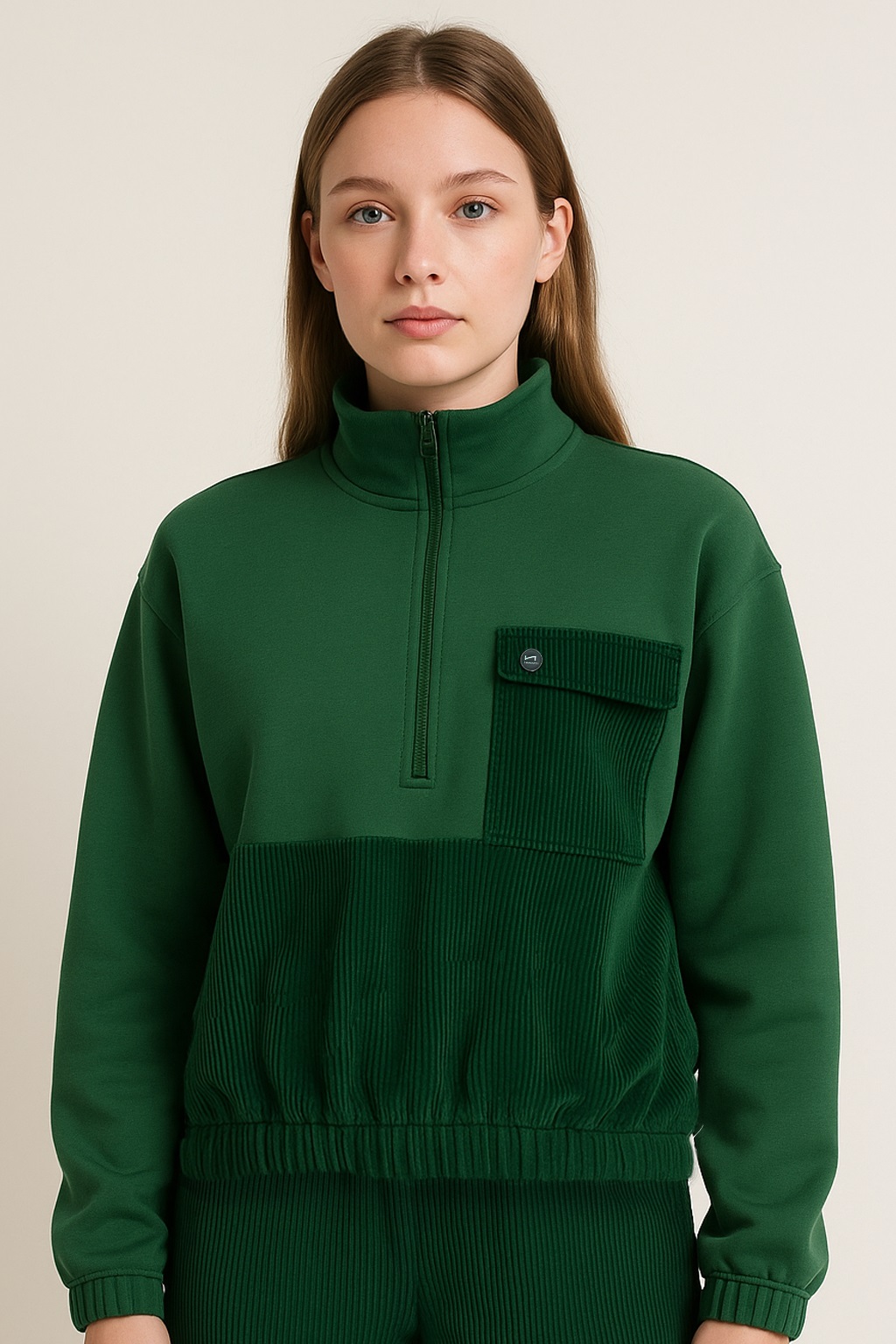 FELPA CHIUSA CON MEZZA ZIP E TASCONE FELPA GARZATA