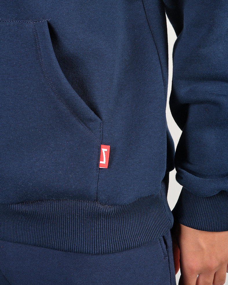 Felpa chiusa con cappuccio in cotone e poliestere brushed gr. 320 - dettaglio tascone sul davanti - vestibilità regolare - prodotta in Italia.