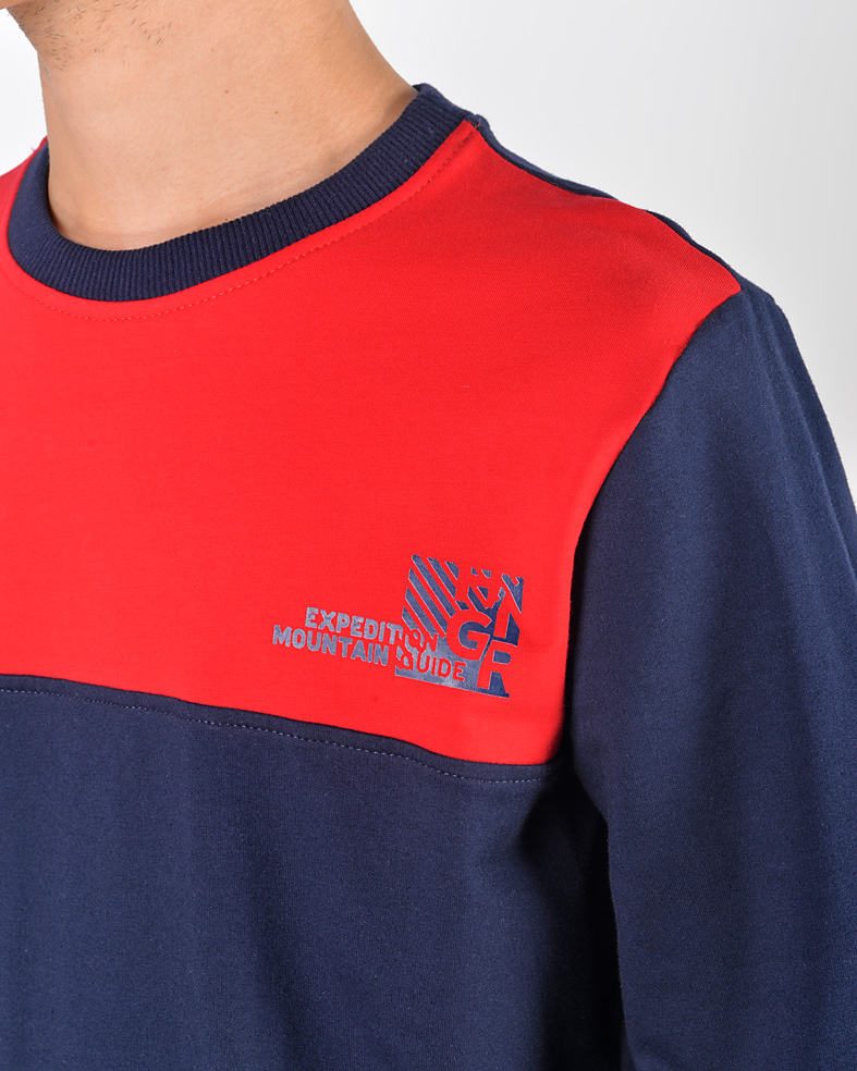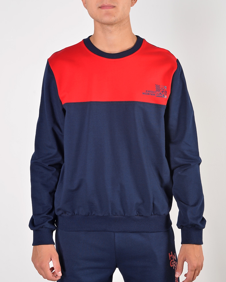 Felpa girocollo bicolore in cotone elastico brushed gr. 250 - dettaglio stampa su petto - vestibilità regolare - prodotta in Italia.