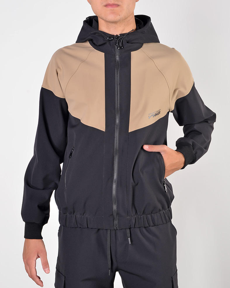 Giubbino in nylon bicolore - dettaglio tasche laterali con zip e logo stampato sul petto - vestibilità regolare - prodotta in Italia