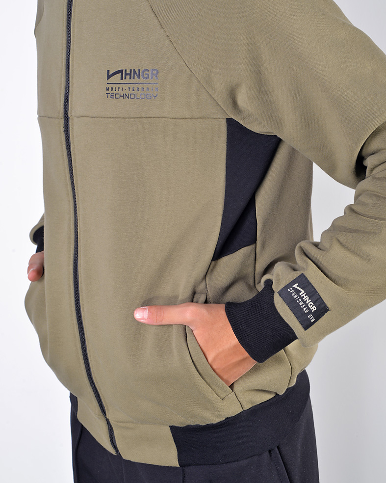 Felpa zip con colletto alto e costina a contrasto in cotone e poliestere gr. 300 - dettaglio logo stampato su petto - vestibilità regolare - prodotta in Italia.
