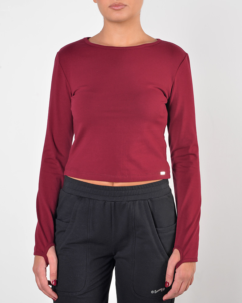 MAGLIA CROPPED CON ASOLA MANICA IN BIELASTICO GARZATO
