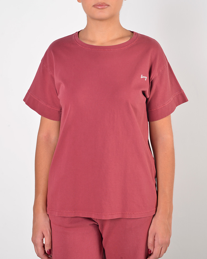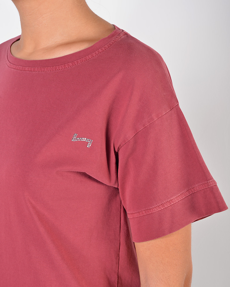 T-shirt mezza manica in cotone 100% tinta in capo - applicazione logo strass sul davanti - vestibilità regolare - prodotta in Italia