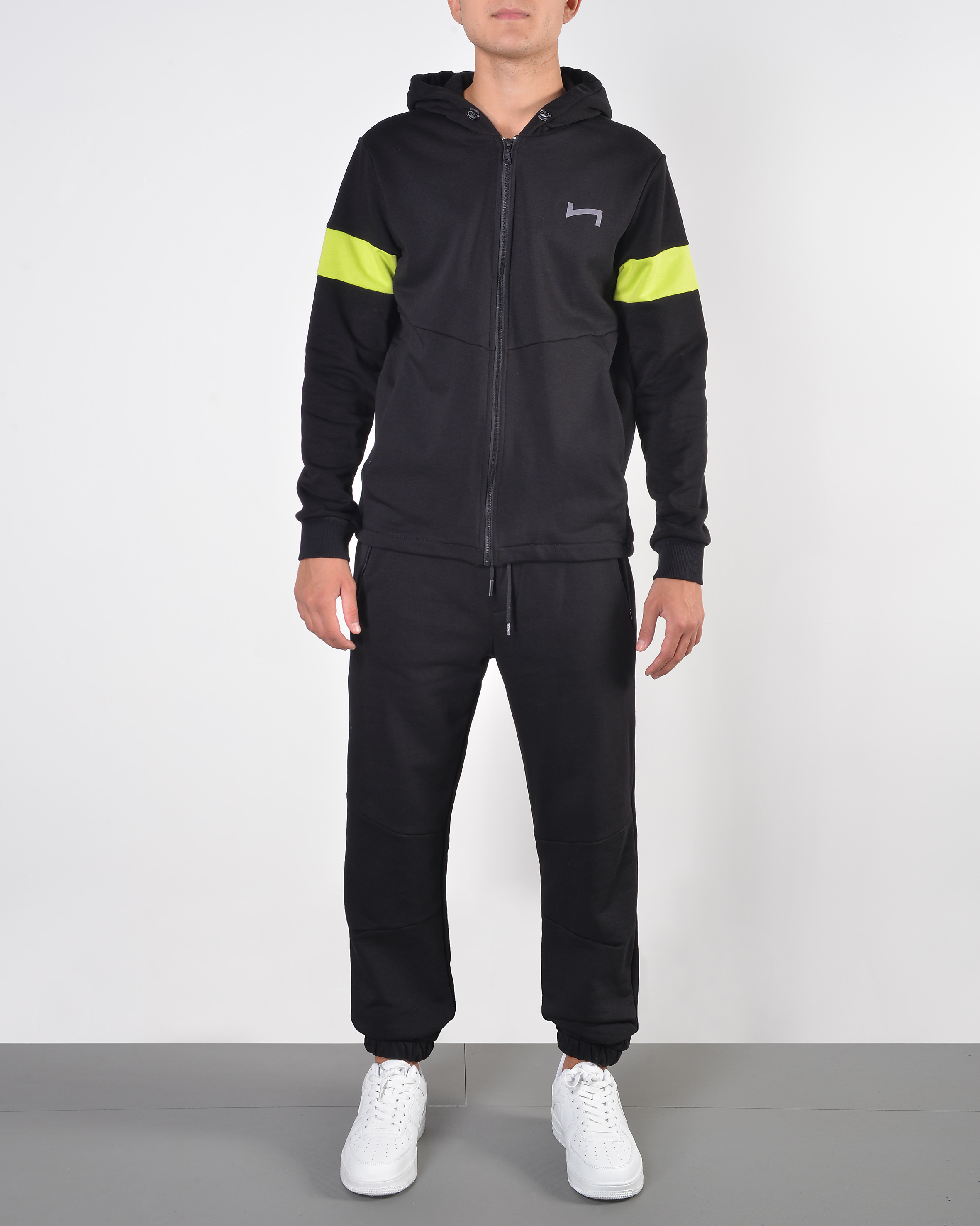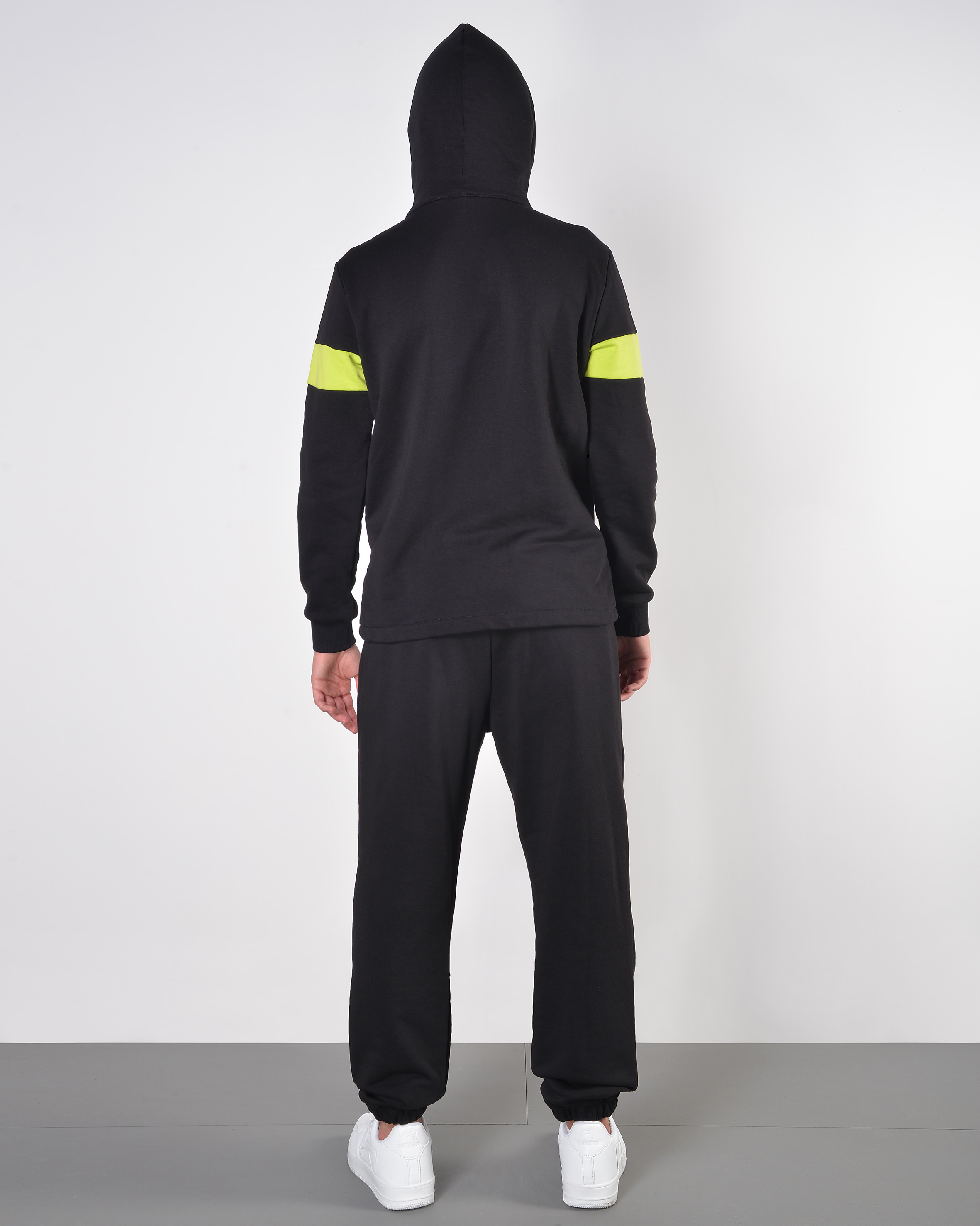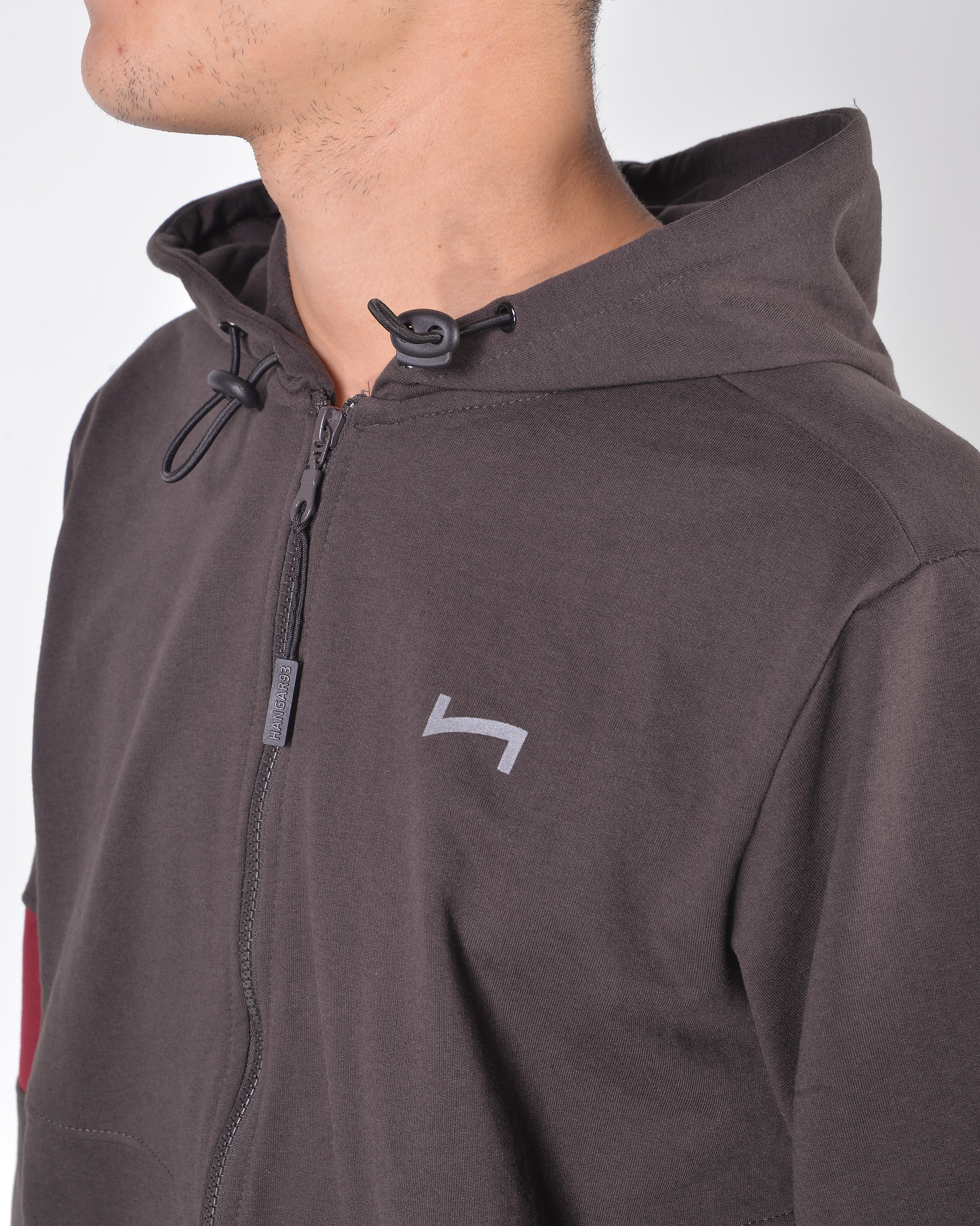 - felpa zip con cappuccio ed inserti alle mancihe a contrasto;